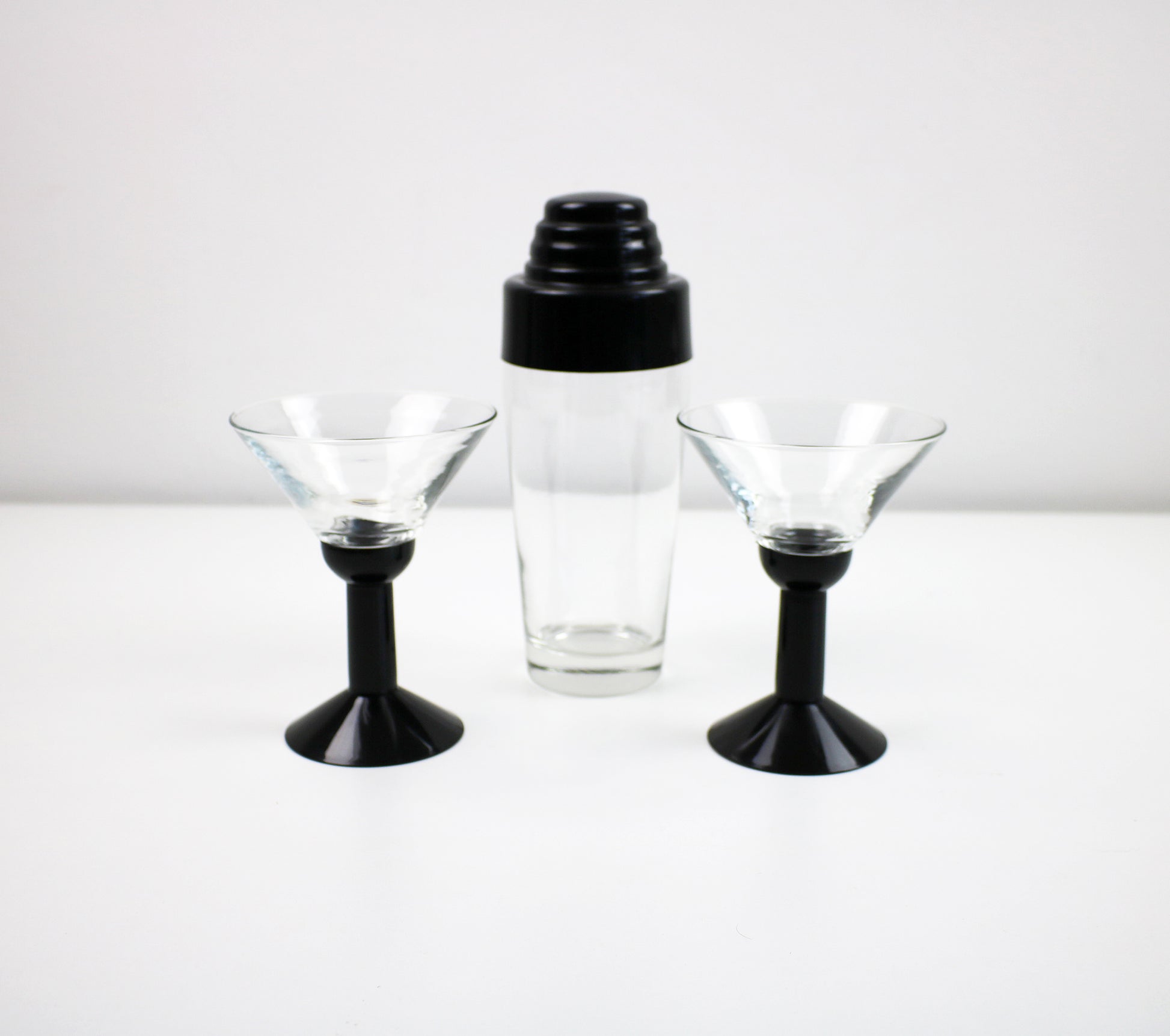 C Jørgensen for Bodum - Pairs of 1980s Oktett glass and plastic martini cocktail glasses
