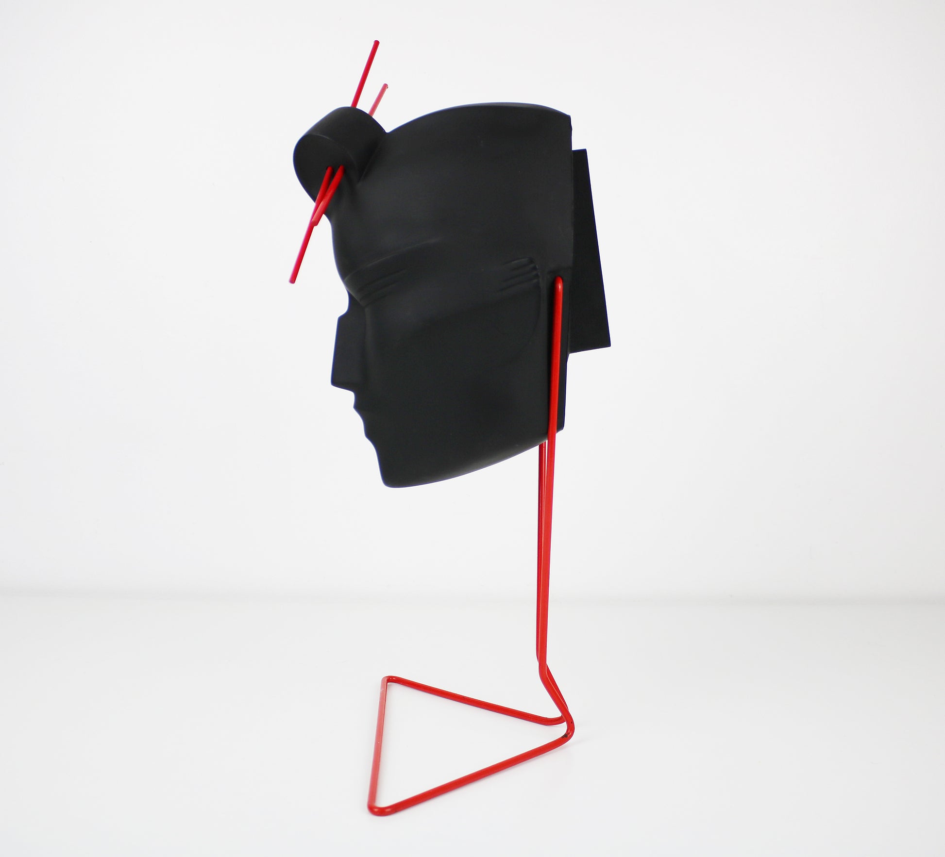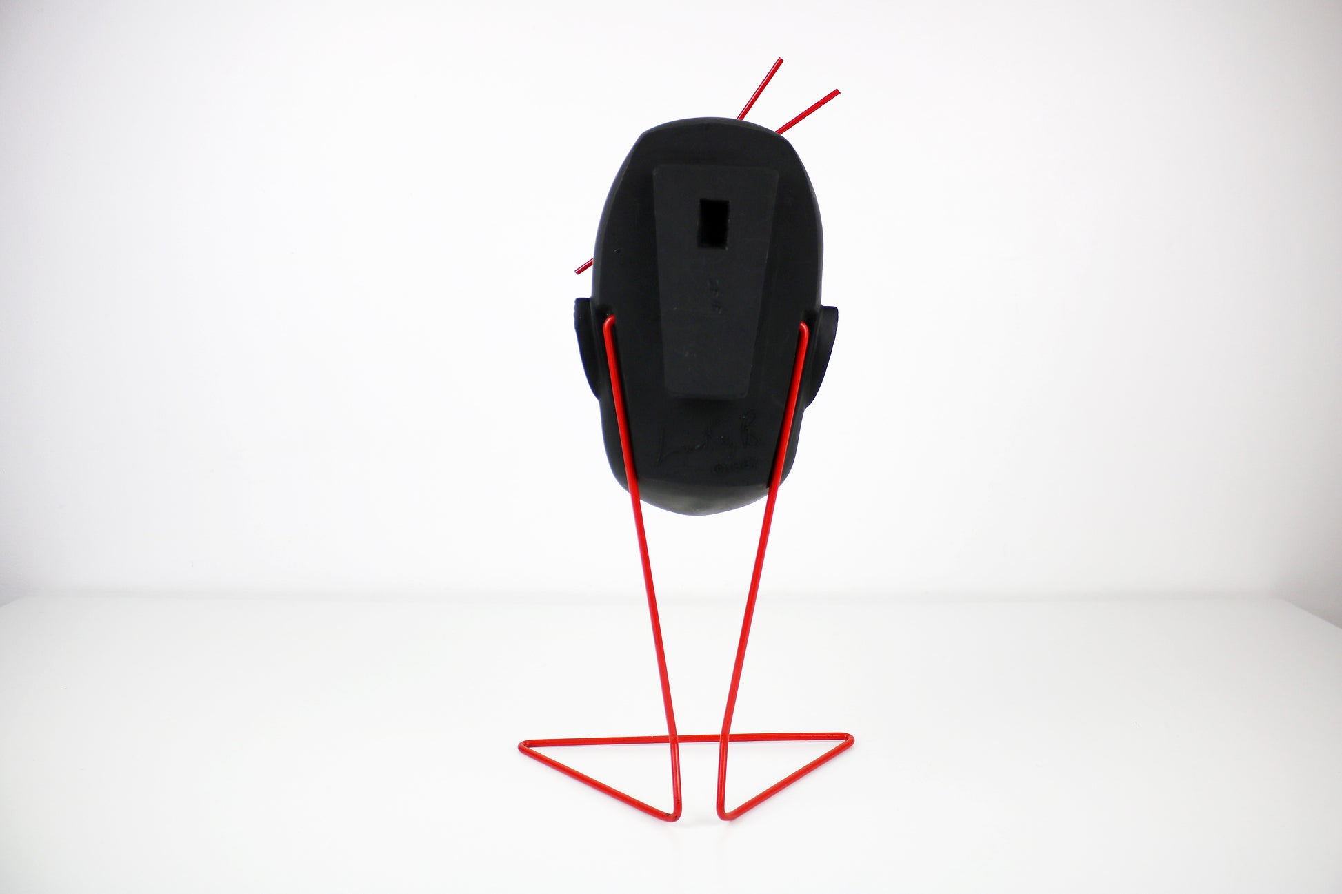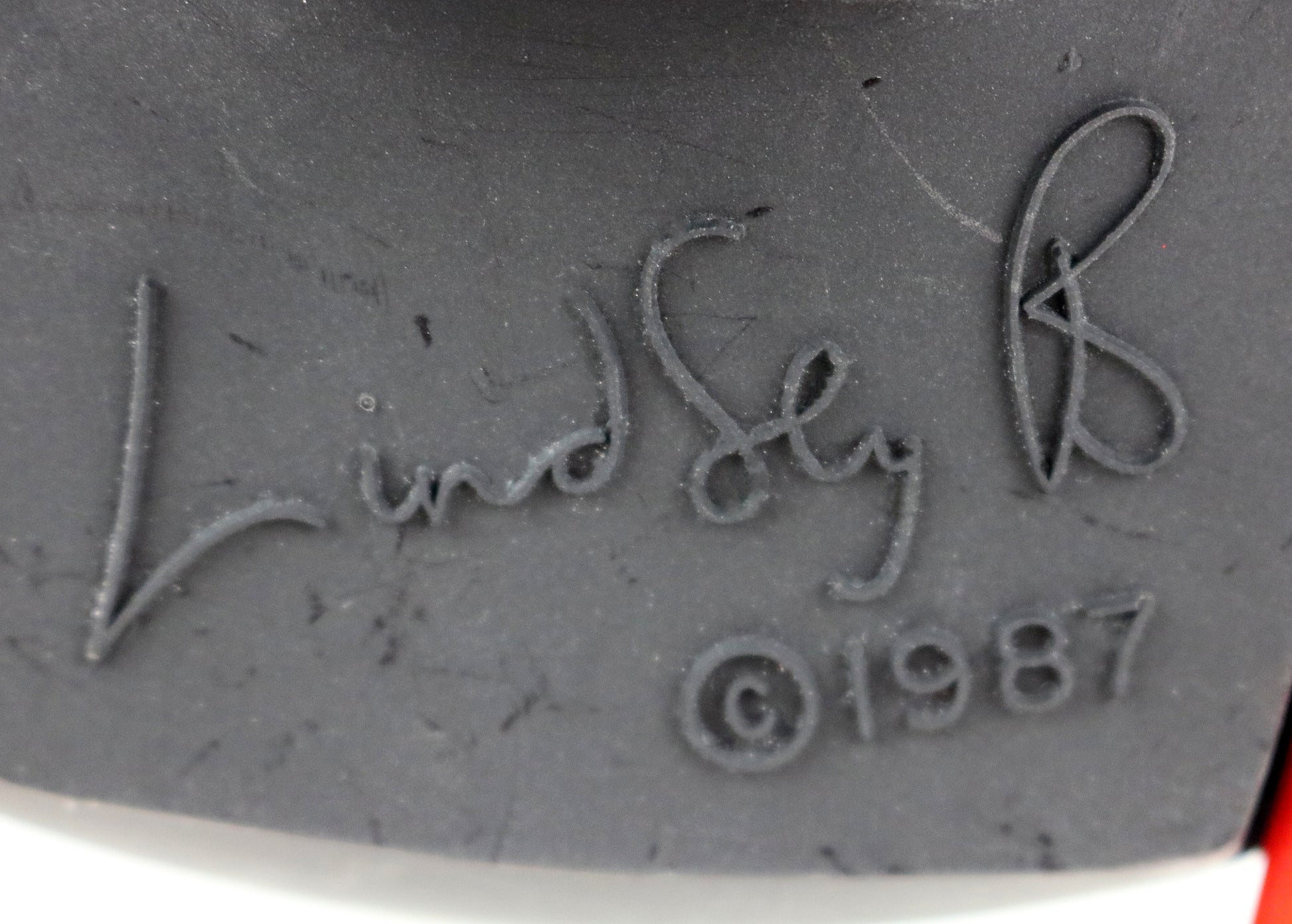 Resin sculpture by Lindsey Balkweill on original stand. She has had the 'sticks' in her hair replaced (wood not metal). Rare item - it is very unusual to find one of Lindsey B's mannequins on the original red metal stand - can also be hung on the wall. Signed in the mould Lindsey B (c) 1987. Note: has some age related scuffs and marks which are hard to show and more visible under bright lights (please zoom in on the second and third pictures for an example). There is some expected age related wear to the stand - light scuffs or a small amount of peeling/chipping. There are no cracks or breaks. We have STIXs partner ZIGGY also listed. If both are required, we will offer a discount. Just contact us.