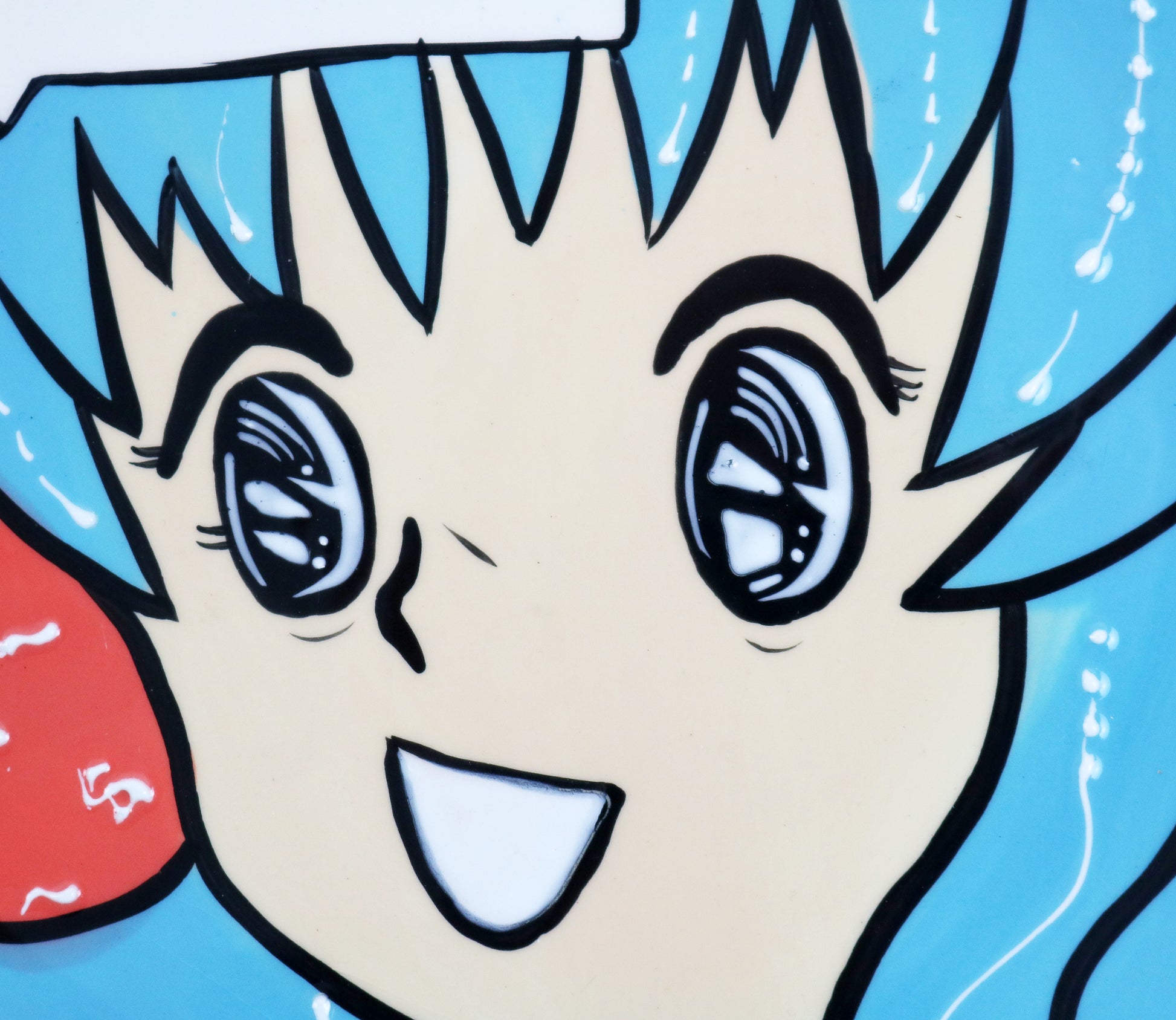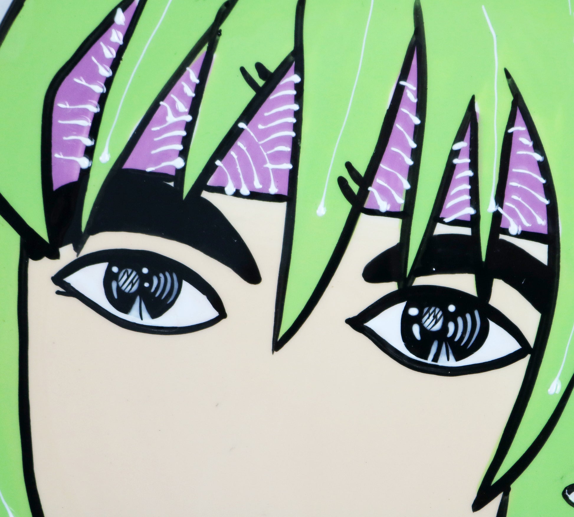 Collectible, preloved anime plate from the early 2000s and designed, I understand from research, in collaboration with ceramicist and artist Joanne Delomba (we are waiting for confirmation of this). We have 2 available in different designs: It's wonderful (blue) and Come with me (green). Both are preloved but show very little signs of age and use. Each has a very small bit of missing overglaze on the outer edge but the black is there so it doesn't show at all. Approx dimensions 20 x 20cm.