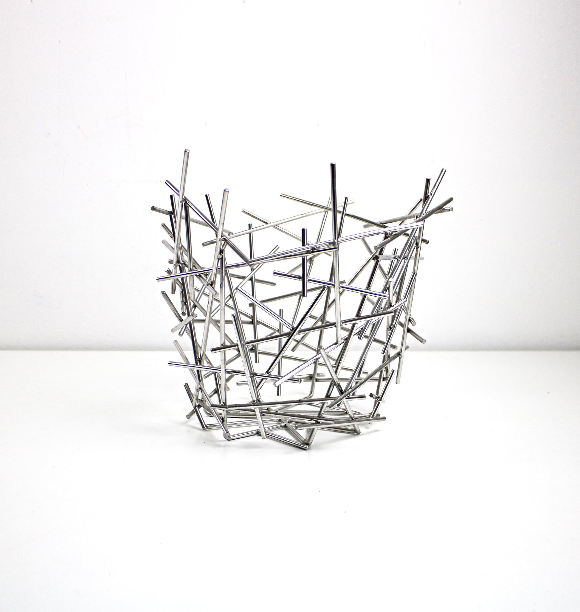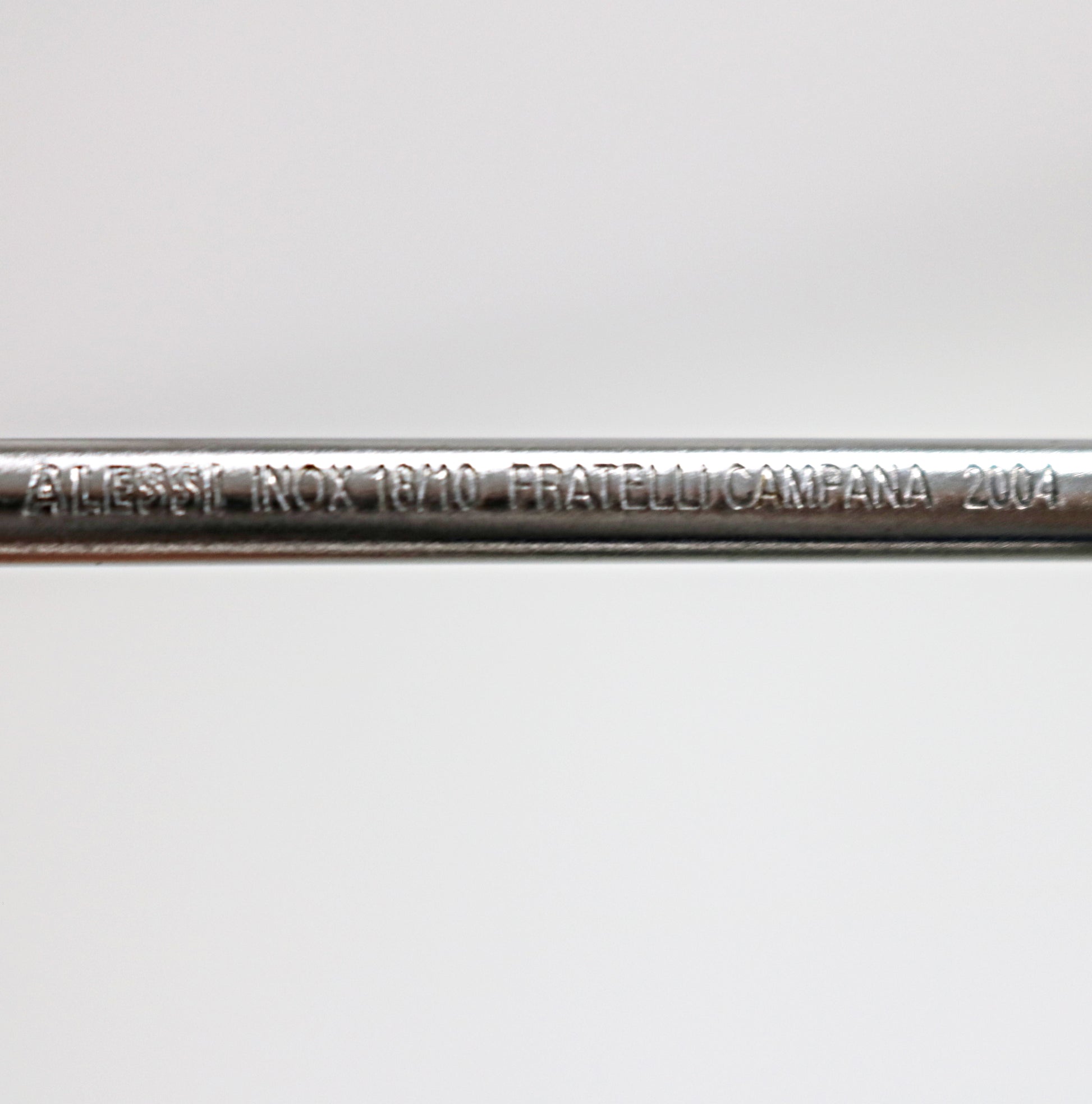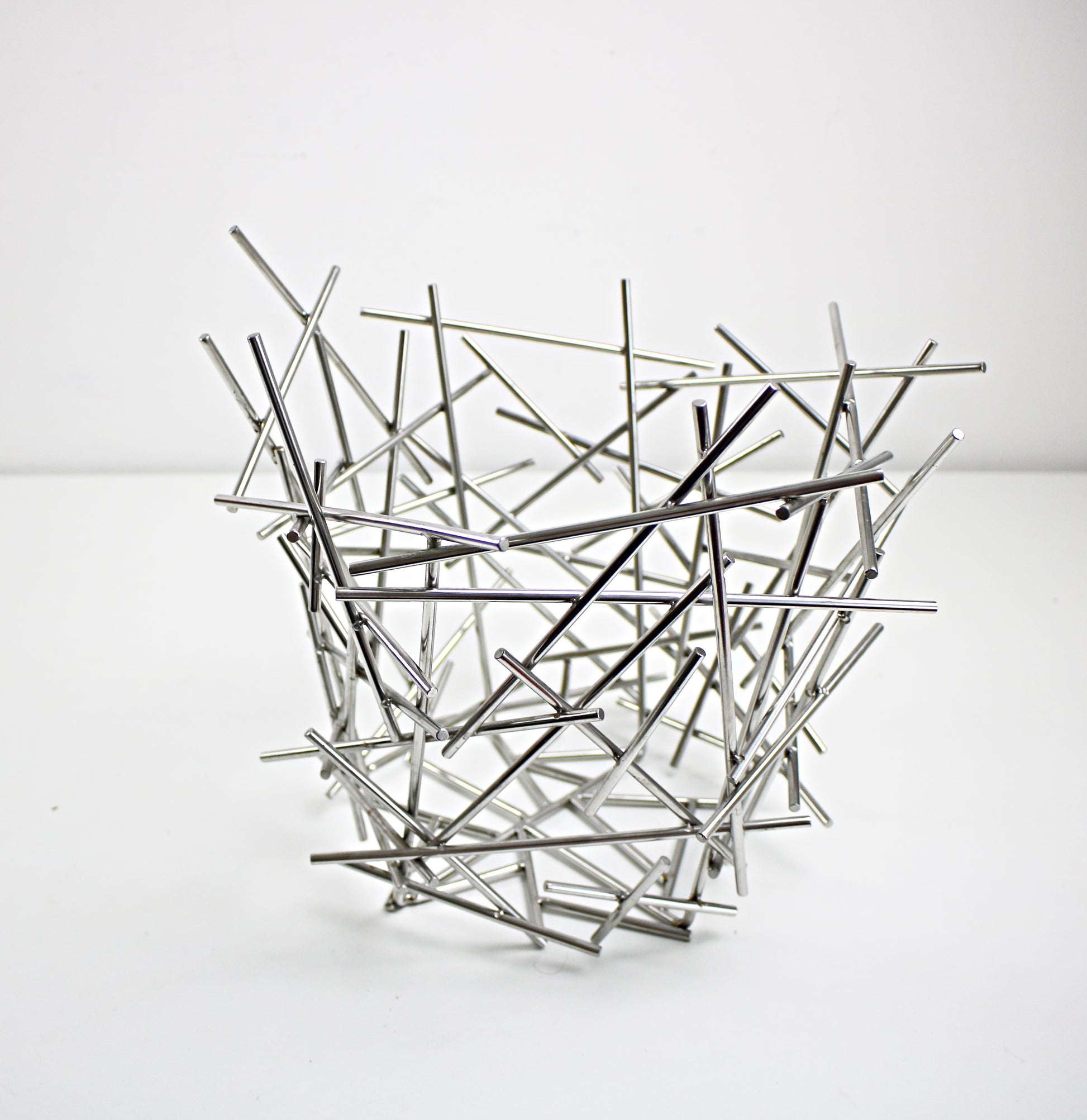 Fratelli Campana for Alessi. Steel sticks in an almost random assembly give this iconic piece a sculptural feel. The Blow up range is still available new. This piece (the larger design) is in preloved condition with light surface marks/signs of use. Plenty of shine and no weld breaks. Impressed Alessi and designer to base. Approx 30cm x 30cm