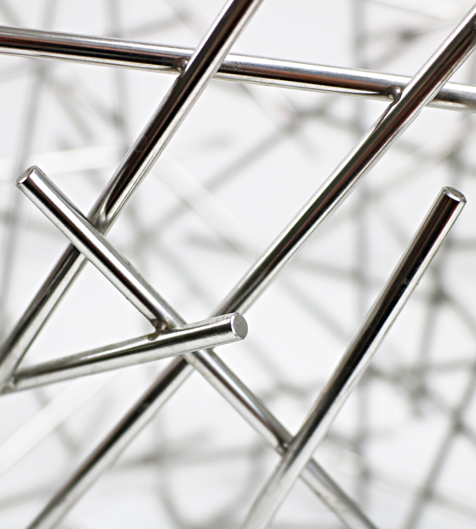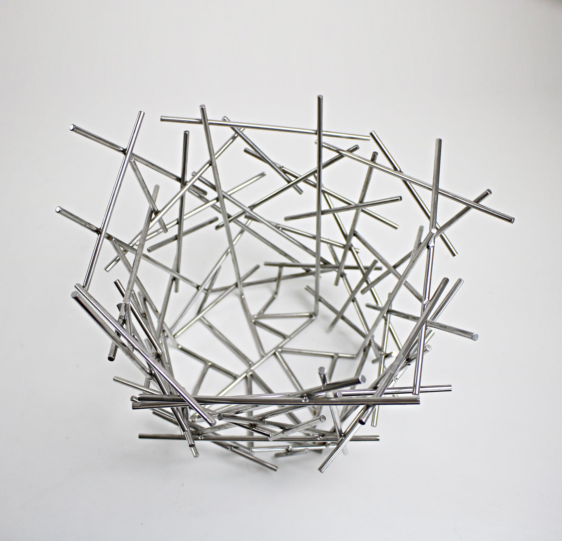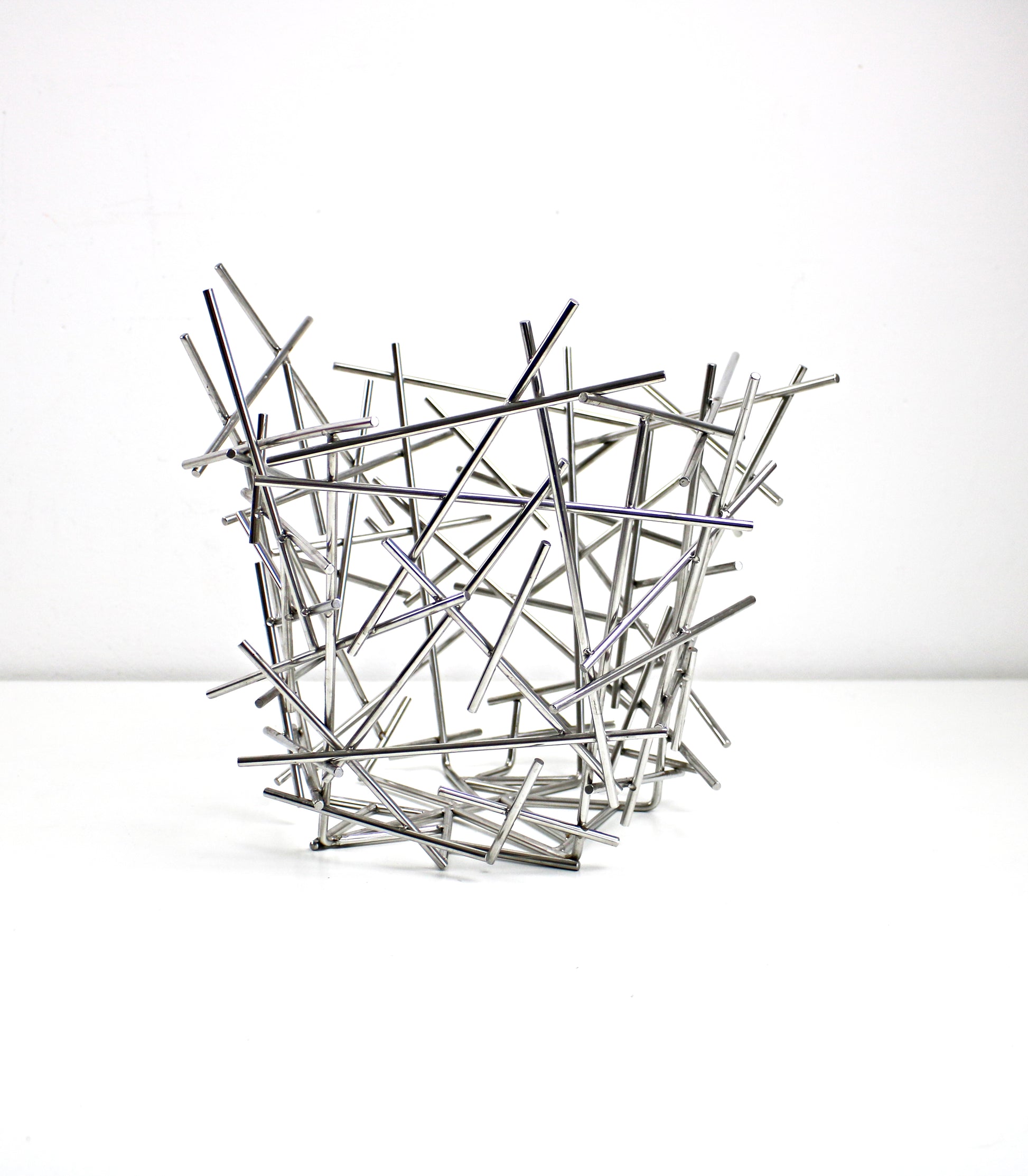 Fratelli Campana for Alessi. Steel sticks in an almost random assembly give this iconic piece a sculptural feel. The Blow up range is still available new. This piece (the larger design) is in preloved condition with light surface marks/signs of use. Plenty of shine and no weld breaks. Impressed Alessi and designer to base. Approx 30cm x 30cm