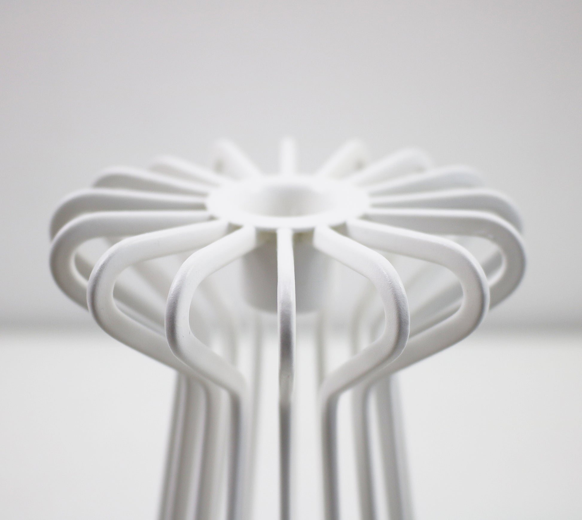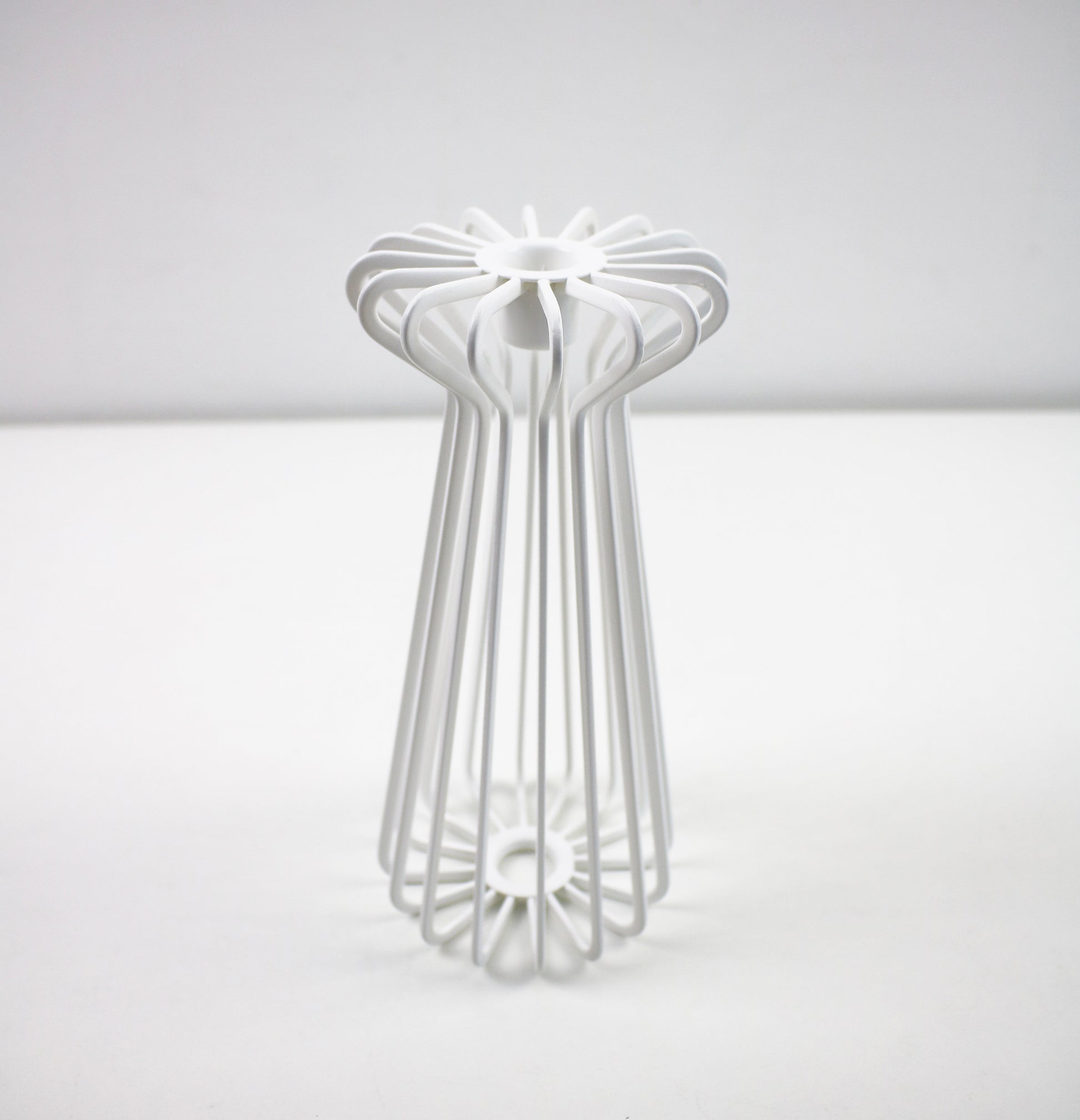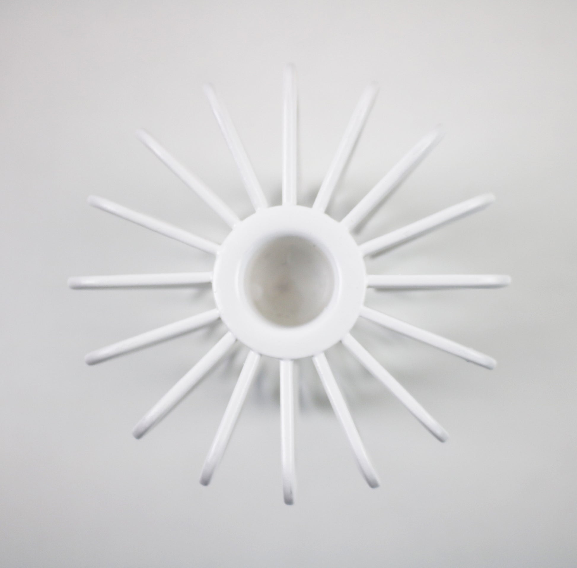 Postmodern 'Tradig' candle holders by Swedish designer Ehlen Johansson for IKEA's PS range. Price is for ONE. Sold in the early 2000s and retired very quickly. These have been gently restored with a light coat of matt white enamel spray. Approximate dimensions: 10cm diameter 23cm tall. Please see our listing for matching fruit bowl.
