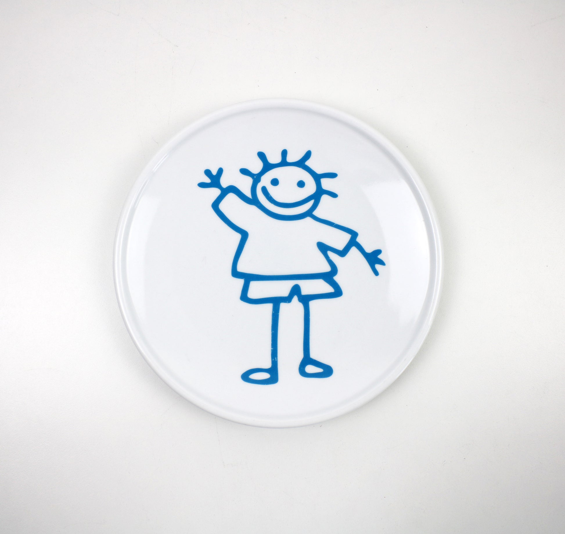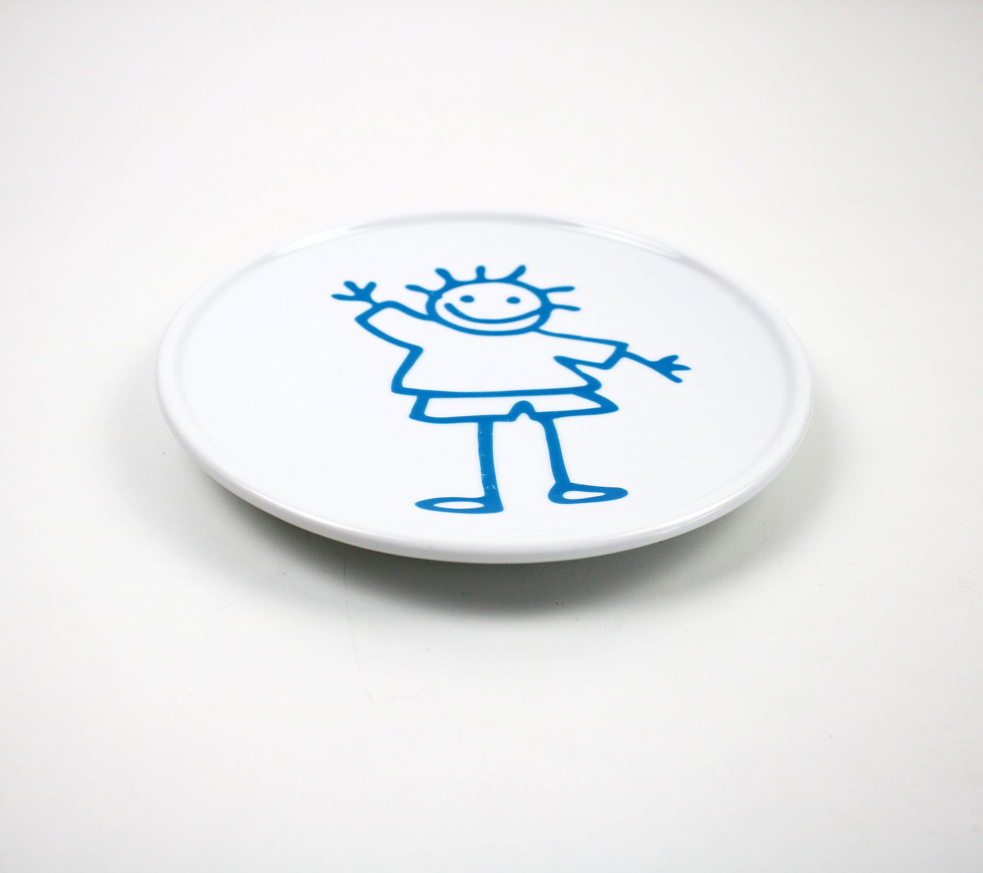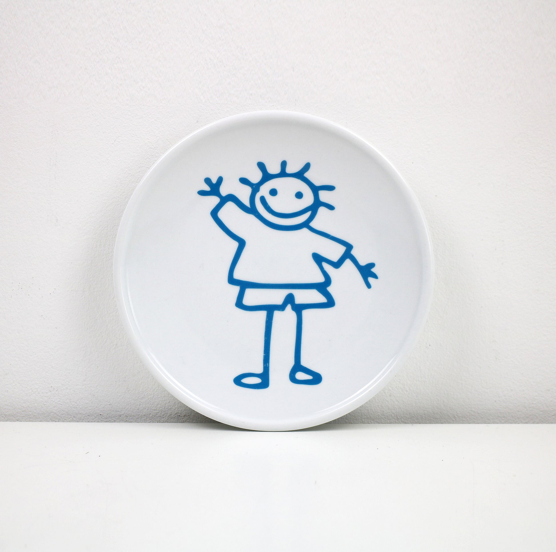 Cute plate for child or collector. Designed for Bodum in 2008, this fun 'kid's drawing' plate is now retired. In preloved condition with very light surface marks - no cracks or chips. Approx 21.5cm diameter.