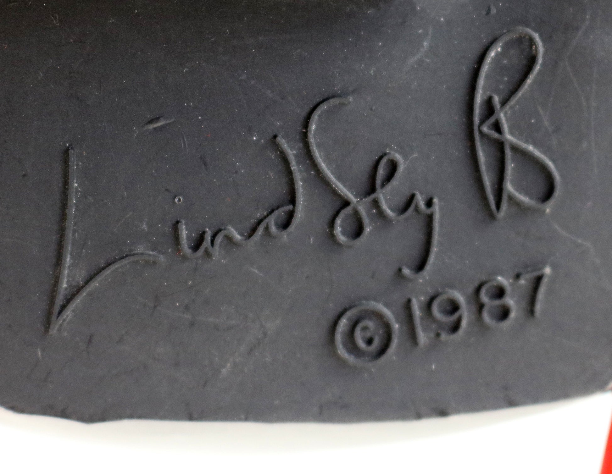 Resin sculpture by Lindsey Balkweill. It is incredibly unusual to find Ziggy (or Stix - listed separately) still on the red wire stand (it can also be hung on the wall should you prefer). Signed in the mould Lindsey B (c) 1987. Note: has some age related scuffs and marks which are hard to show and more visible under bright lights (please zoom in on the second and third pictures for an example) and there are some age related marks/small amounts of peeling to the red metal stand. There are no cracks or breaks.