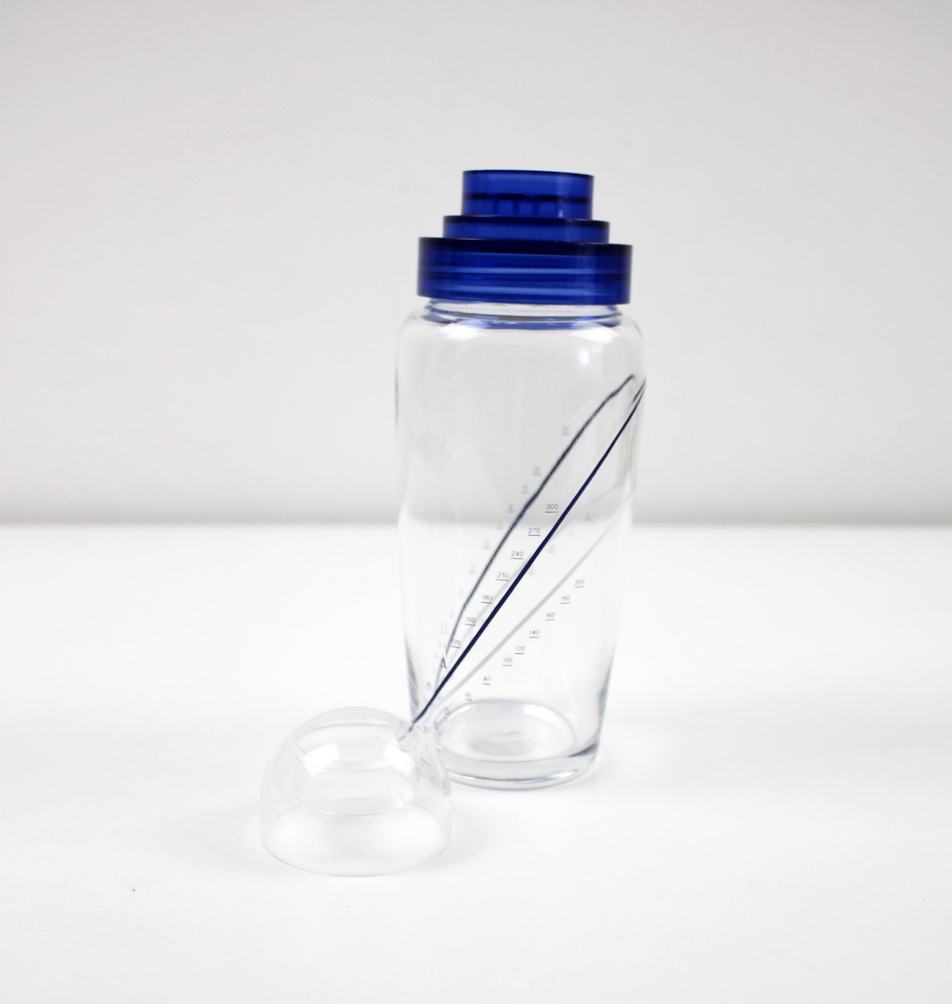 Vintage Luigi Bormioli Cocktail Party Blue - shaker and measuring jug in glass and lucite